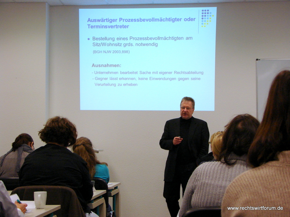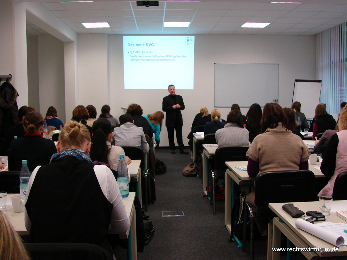 Am Freitagvormittag stand ein Seminar mit Heinz Hansens, Vorsitzender Richter am Landgericht Berlin und Autor zahlreicher Fachpublikationen zum anwaltlichen Vergütungsrecht, auf dem Programm zum Thema „Neues aus der Rechtsprechung und Vorschau auf das neue RVG“. Der Referent erläuterte zunächst umfassend die Gesetzeslage und aktuelle Rechtsprechung zur Kostenerstattung bei Terminsvertretungen sowie für Anwalts- und Parteireisen. Sodann gab er einen Überblick über die geplanten Änderungen des Rechtsanwaltsvergütungsgesetzes im Rahmen des Zweiten Gesetzes zur Modernisierung des Kostenrechts. Das ebenfalls für den Vormittag geplante Seminar „Word 2010“ ist leider ausgefallen; einige der hierfür angereisten Teilnehmerinnen und Teilnehmer nutzen das Angebot, sich noch kurzfristig dem RVG-Seminar anzuschließen.