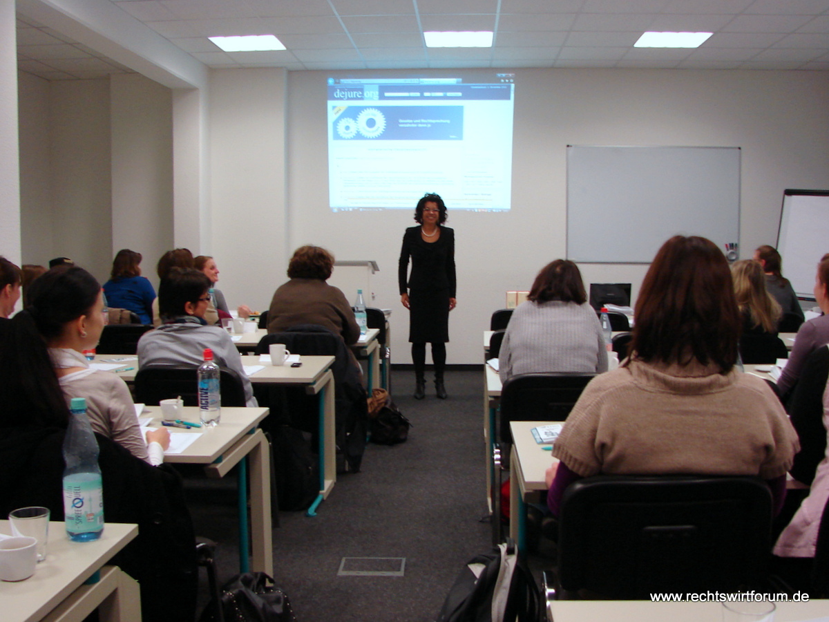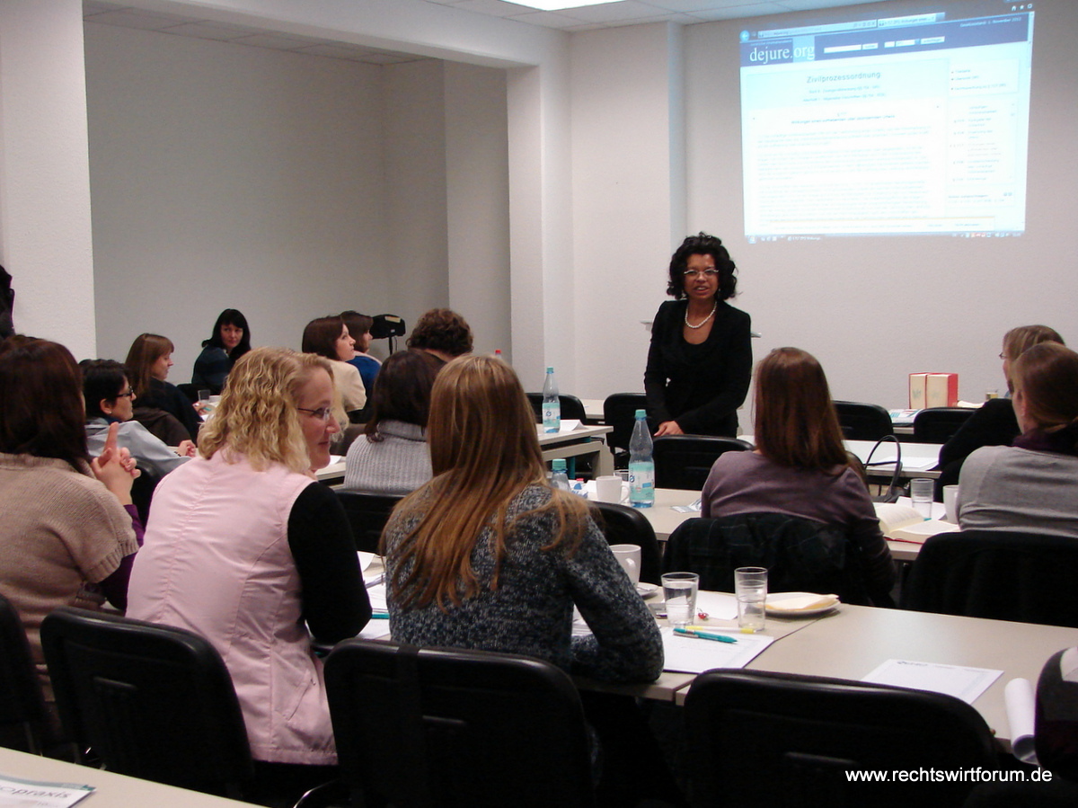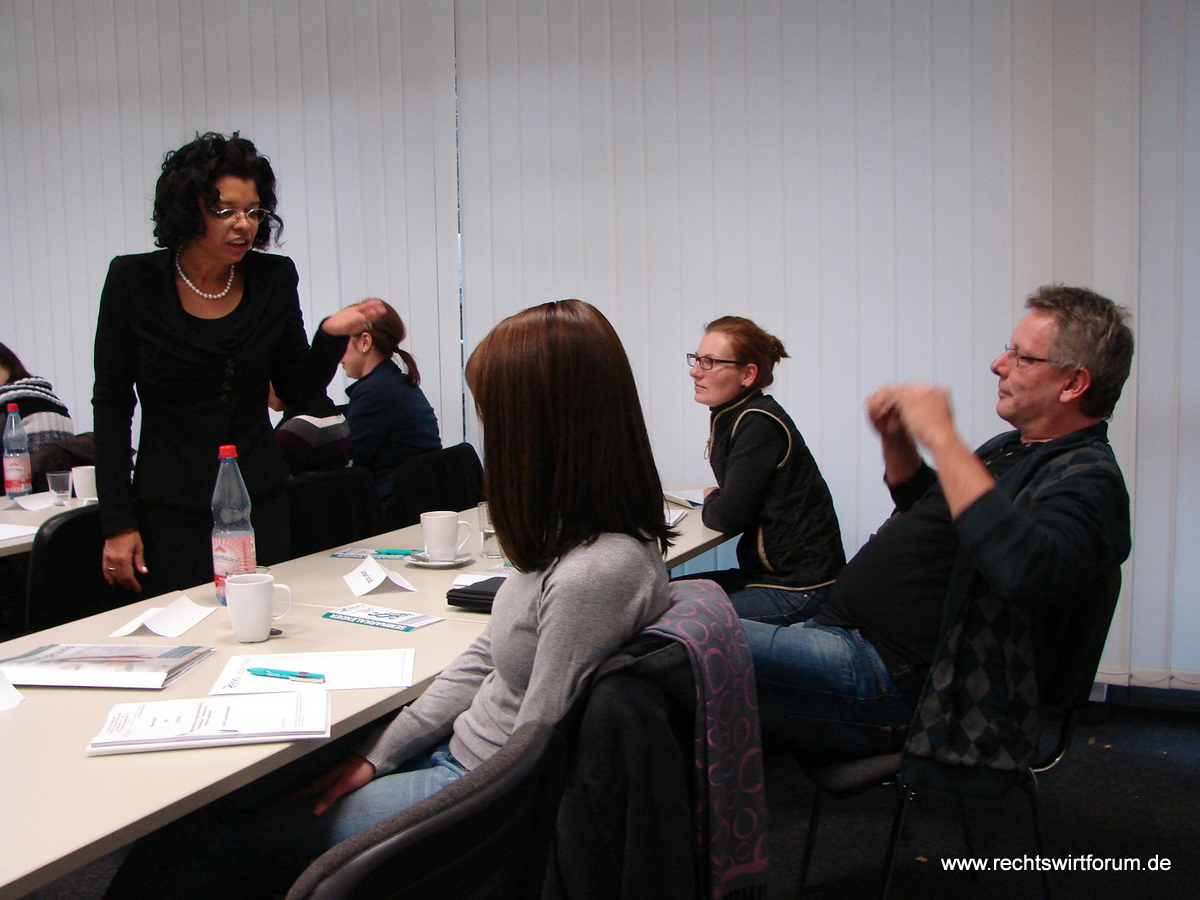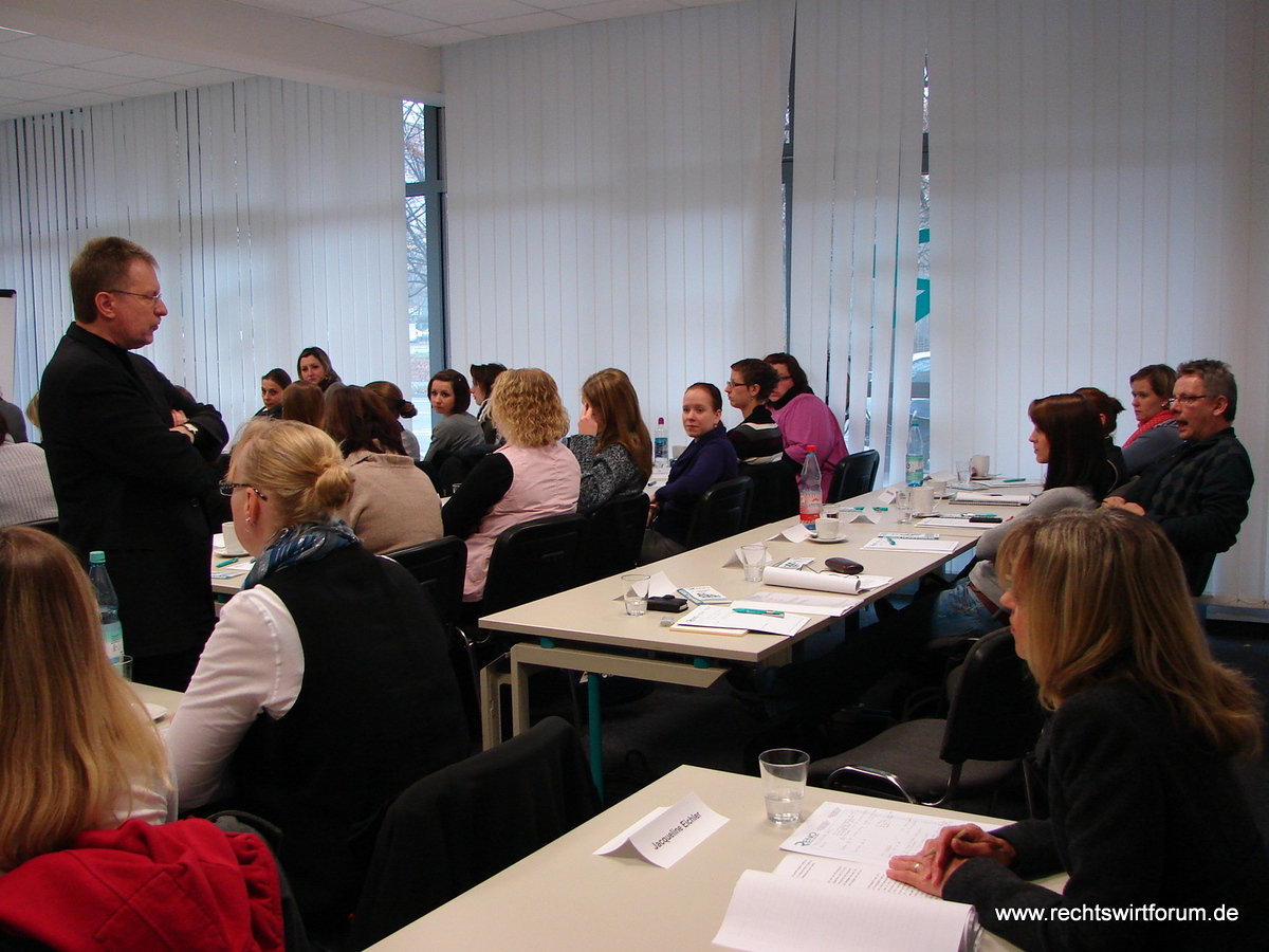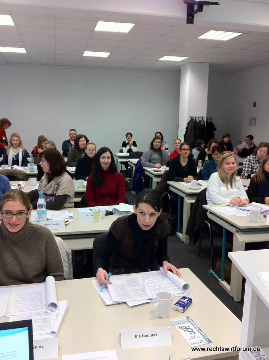 Bei Frau Prof. Brigitte Steder von der FH Meißen hieß es am Samstag "Alles neu? Die Reform der Sachaufklärung in der Zwangsvollstreckung". Die Dozentin stellte die ab dem 01.01.2013 geltenden geänderten Vorschriften zur Zwangsvollstreckung durch den Gerichtsvollzieher vor und gab wertvolle Tipps zur Strategie im Zusammenhang mit den ab dem 01.01.2013 zu erteilenden Vollstreckungsaufträgen. Die Teilnehmer der ausgebuchten Veranstaltung nahmen u. a. zur Kenntnis, dass nunmehr jeder beliebige Gerichtsvollzieher mit der Ermittlung der Anschrift von Schuldnern beauftragt werden kann, der Gerichtsvollzieher weitergehende Möglichkeiten bei der Bewilligung von Ratenzahlung hat, solange der Gläubiger nicht widerspricht und der Gerichtsvollzieher sogar Informationen bei Dritten über Arbeitsverhältnisse, Fahrzeuge und Bankverbindungen des Schuldners einholen darf. Es wurde auch auf den ab dem 01.03.2013 geltenden Formularzwang bei der Forderungspfändung hingewiesen. Im Verlauf der Veranstaltung ergaben sich angeregte Diskussionen der Teilnehmer über den Sinn der Neuerungen mit den erwarteten Auswirkungen auf die Praxis. Zur Bewältigung der kommenden Neuerungen stellte die Dozentin ein ausführliches Manuskript mit einer Synopse der alten und neuen Normen zur Verfügung. Die Dozentin ließ sich auch durch einen intensiv Kontakt suchenden, deutlich indisponierten Partyheimgänger mit anschließendem Polizeieinsatz vor dem Seminarraum nicht aus der Ruhe bringen.
