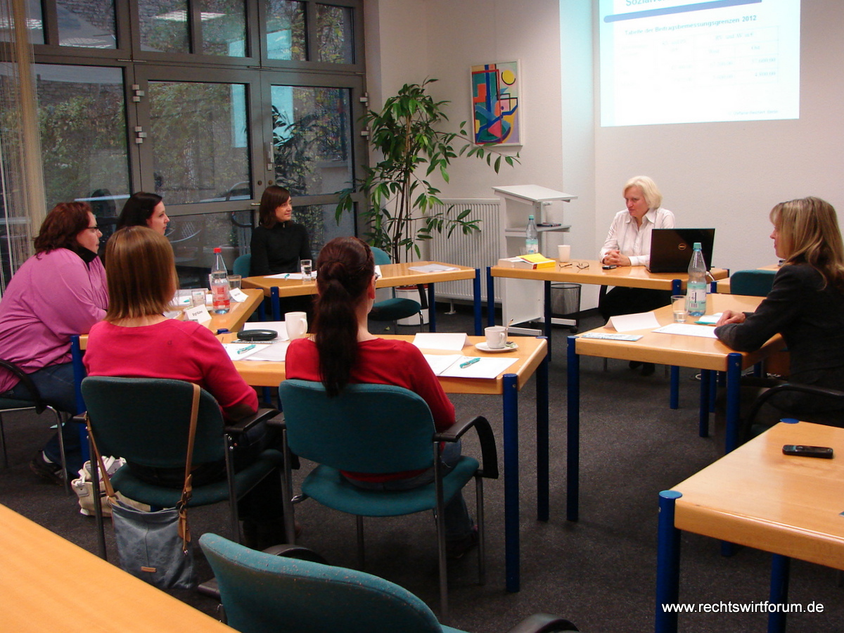 Parallel hierzu erörterte man am Freitagnachmittag bei Stefanie Reichert die Frage „Wer hat schon was zu verschenken? - Wie optimiere ich meine Lohnersatzleistungen bei Schwangerschaft, Elternzeit oder Arbeitslosigkeit?". Behandelt wurden insbesondere die Themen Sozialversicherung, Lohnsteuer und Lohnersatzleistungen. Anhand von Rechenbeispielen zur Entgeltabrechnung erläuterte die Dozentin auch die Konsequenzen der Steuerklassenwahl im Hinblick auf später eventuell zu erwartende Lohnersatzleistungen. Das Seminar fand großen Zuspruch und war nicht nur für Personalverantwortliche interessant, sondern auch für jeden Arbeitnehmer. Da nur der Nachmittag für dieses umfassende Thema zur Verfügung stand, wurde an die Referentin der Wunsch herangetragen, das Seminar im Jahr 2013 zu wiederholen bzw. zu vertiefen.